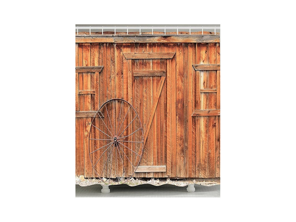 The old wheel leaning on a barn wall creates a rustic scene on this Shower Curtain – Rustic Wall and Wheel and therefore would make a beautiful rustic edition to any bathroom. It is made from polyester and also has a weighed bottom. For other choices in our bathroom accessories – click here.
